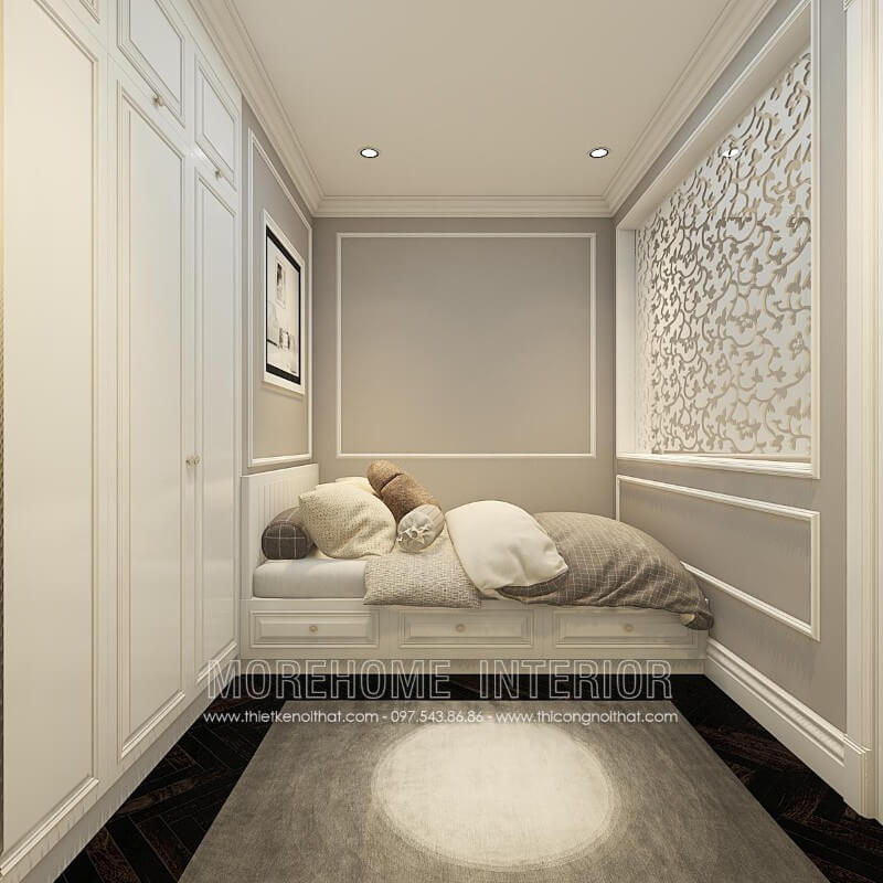 Thiết kế giường ngủ con thông minh, hiện đại, phần hộc giường được KTS thiết kế sáng tạo kết hợp chiếc giường phụ có thể kéo ra dễ dàng, phù hợp với các căn hộ chung cư nhỏ