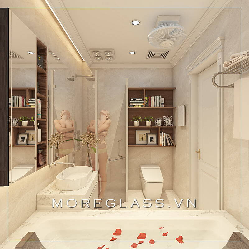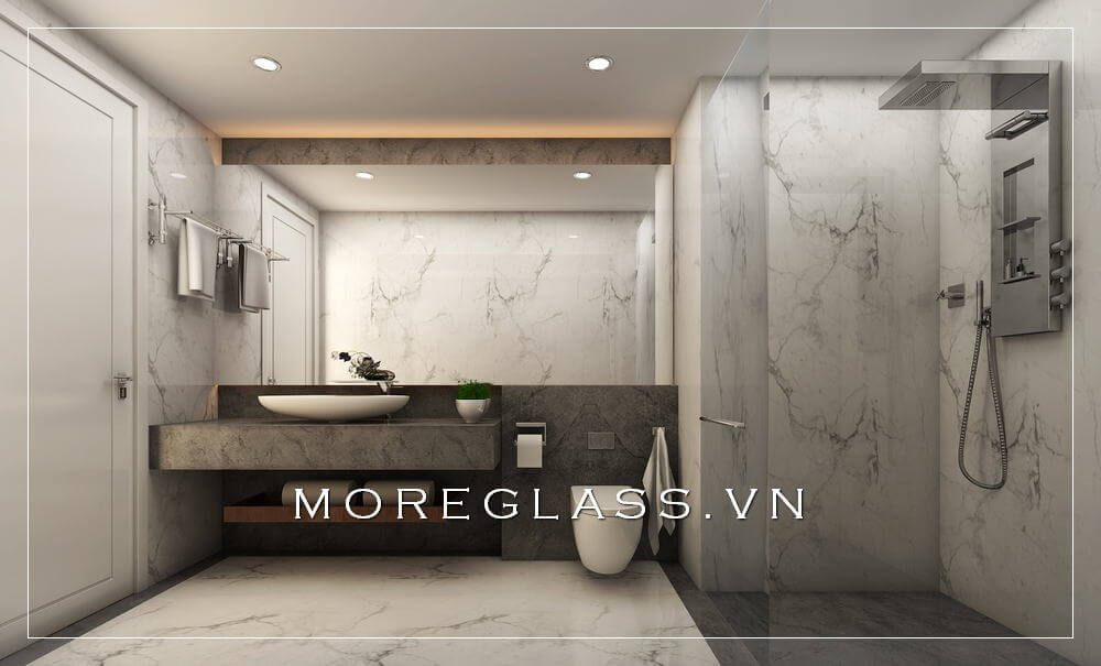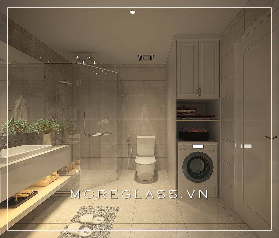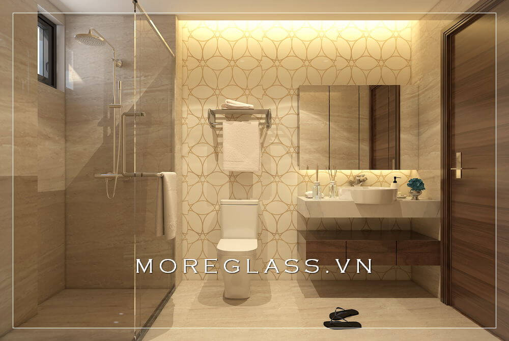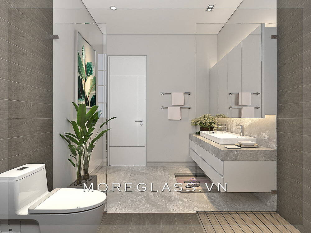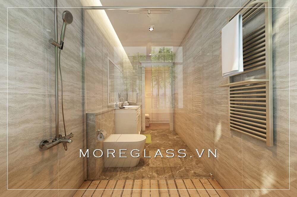 Trang trí phòng tắm biệt thự cao cấp với kính cường lực an toàn mang phòng cách sang trọng