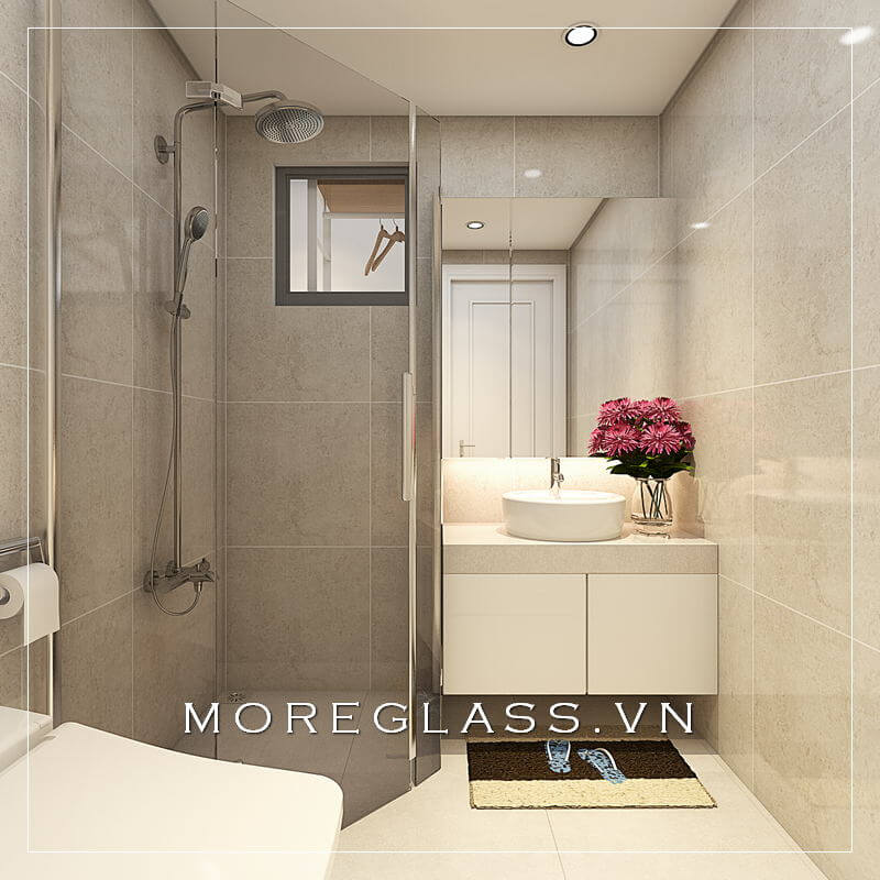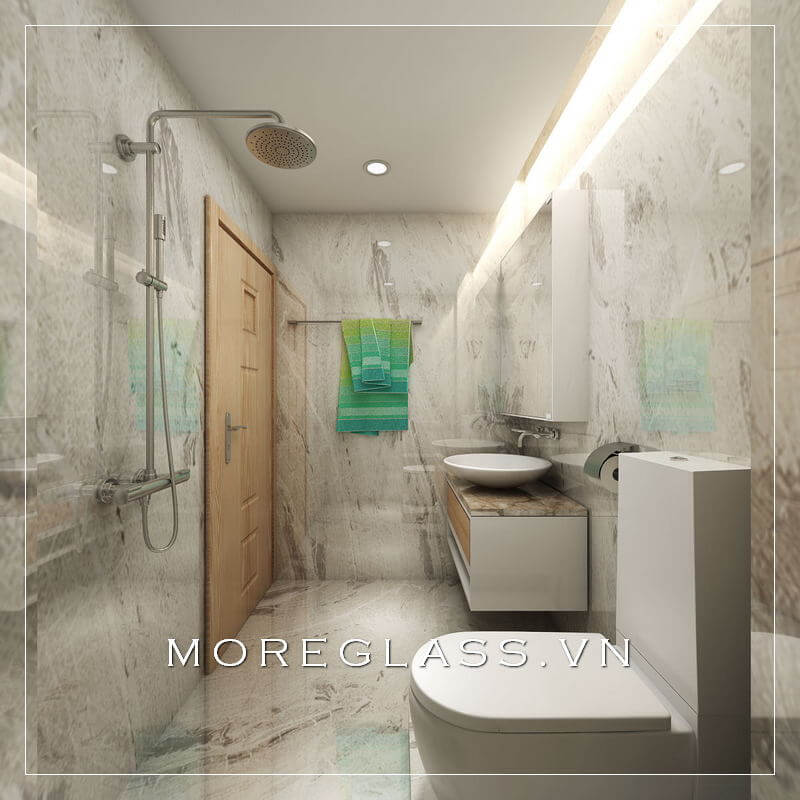 Thiết kế phòng tắm chung cư đơn giản tính tế là xu hướng được nhiều hộ gia đình ưa chuộng.