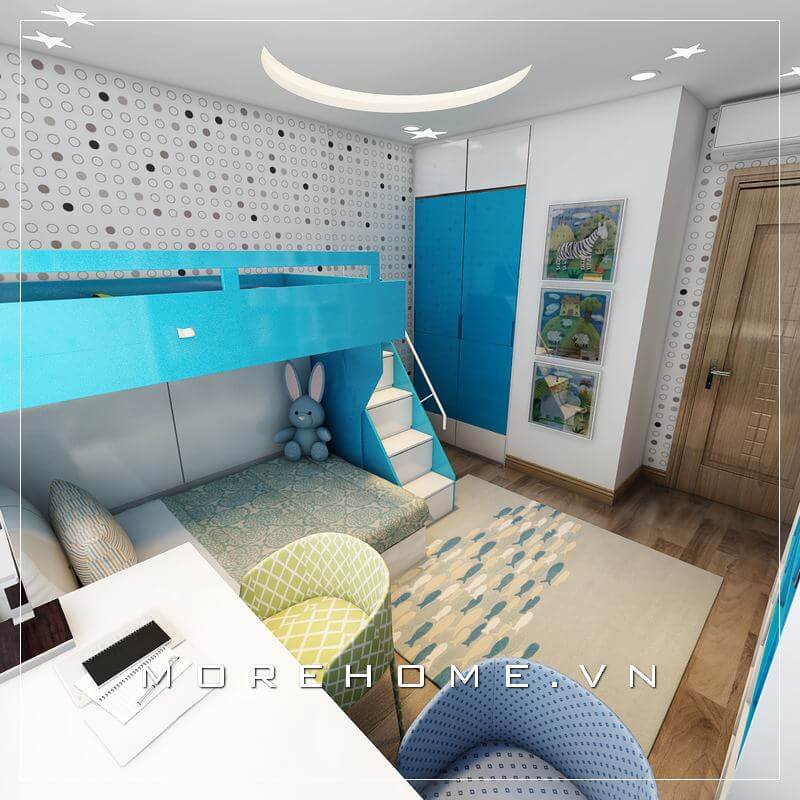 Morehome gợi ý tủ áo màu trắng được thiết kế kiểu dáng cửa lùa âm tường, gợi cho phòng ngủ của bé thêm rộng thoáng và khoa học