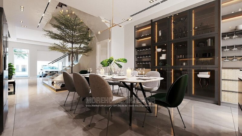 Không gian phòng ăn sang trọng khiến gia chủ vô cùng tự hào khi mời khách ở lại dùng bữa tại gia