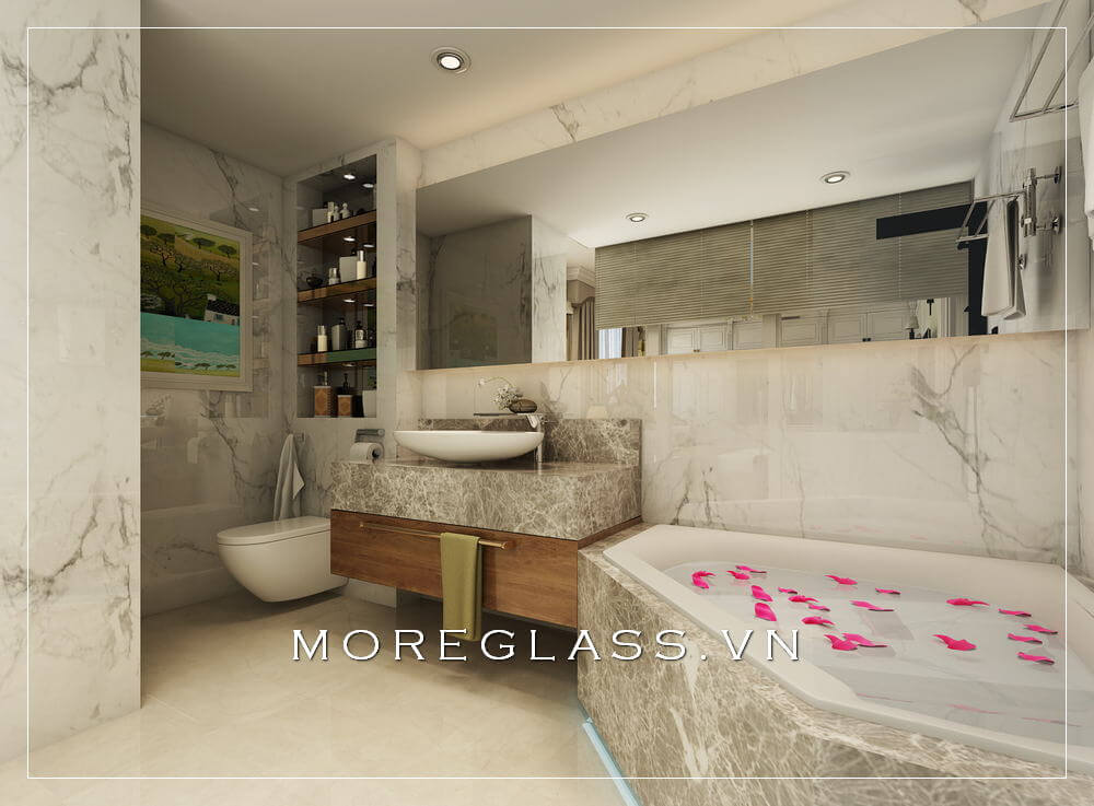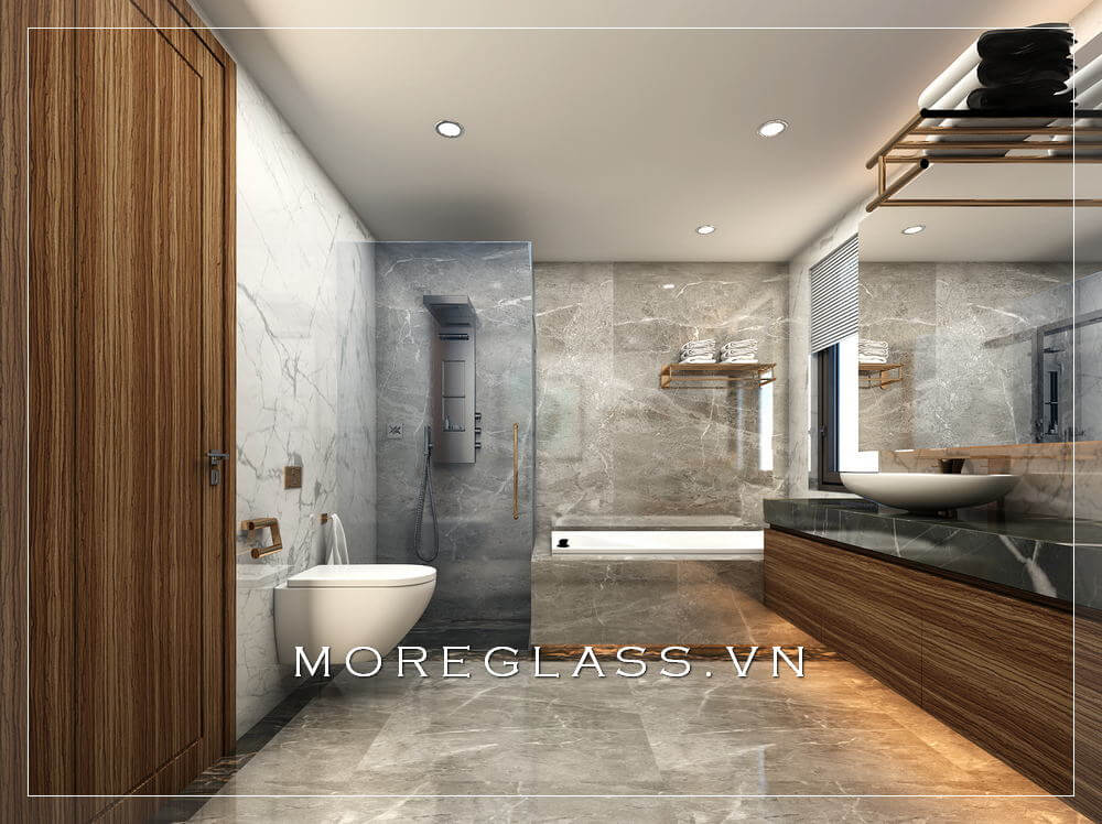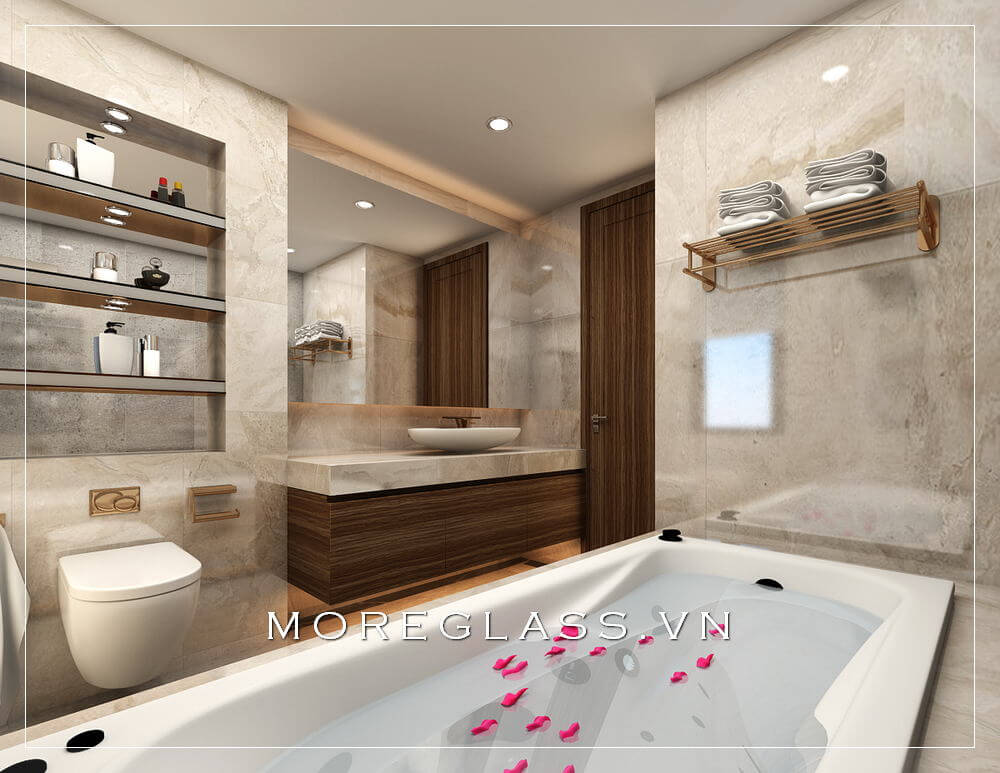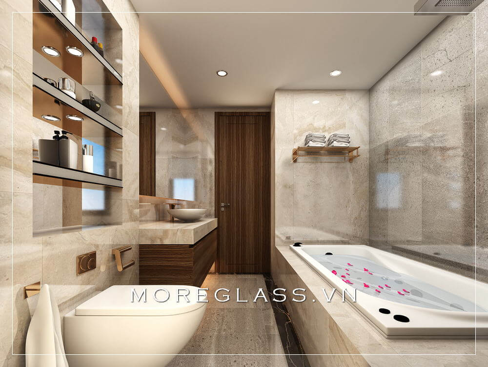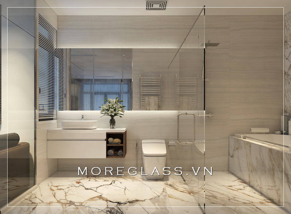 Thiết kế phòng tắm chung cư cao cấp với kính cường lực an toàn mang phòng cách hiện đại