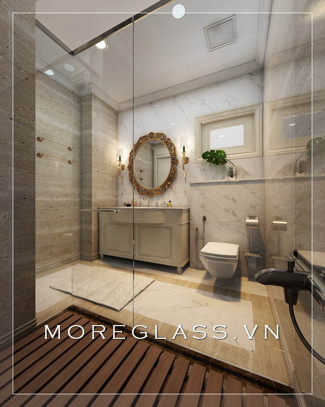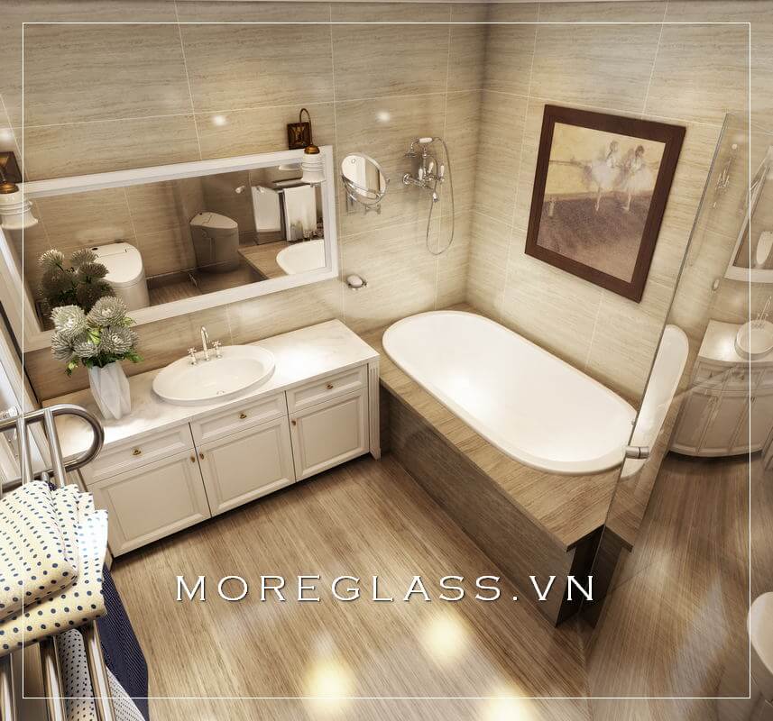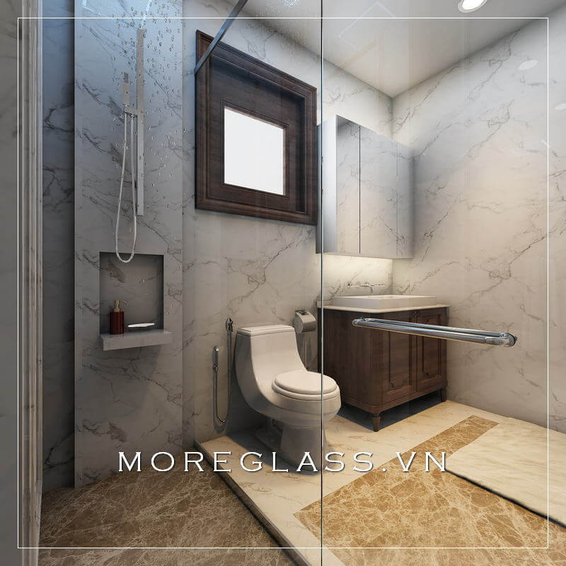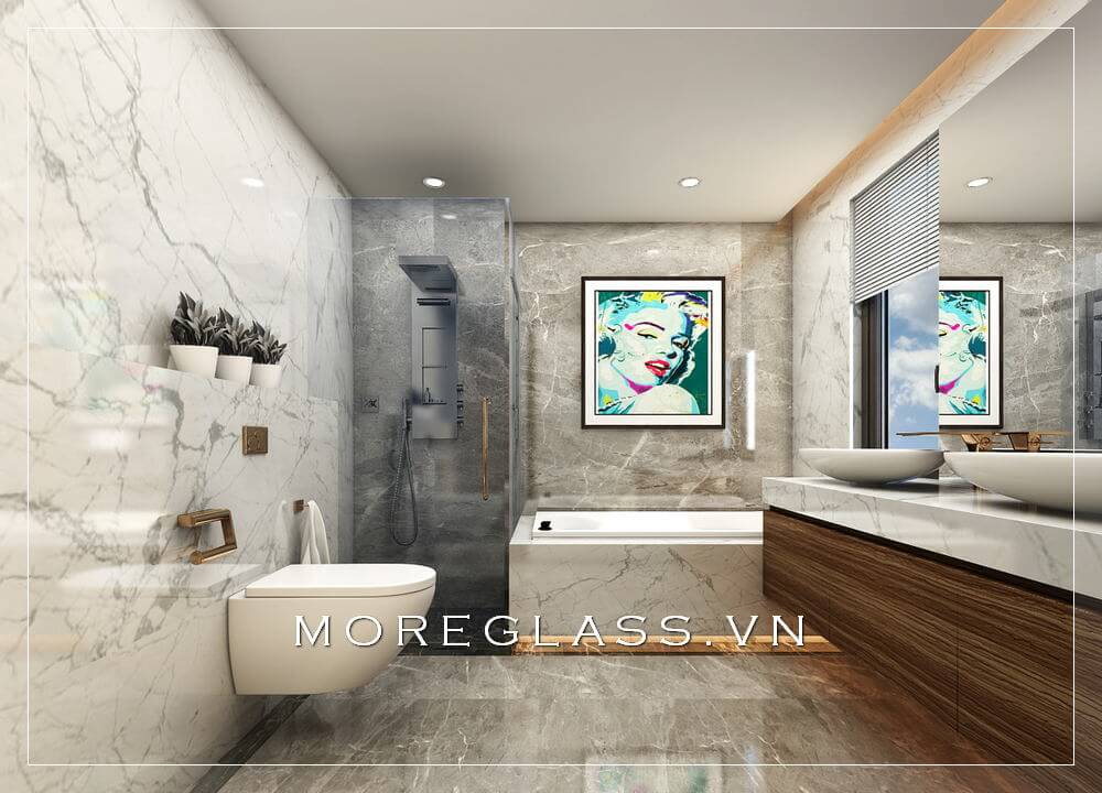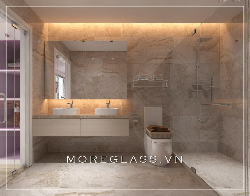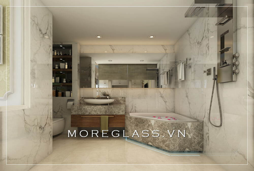 Thiết kế phòng tắm chung cư cao cấp với kính cường lực an toàn mang phòng cách hiện đại
