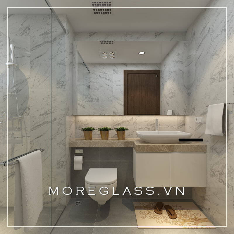 Mẫu thiết kế phòng vệ sịnh kết hợp phòng tắm kính nhỏ gọn với diện tích hạn chế nhưng đầy đủ tiện nghi được ưa chuộng cho căn hộ chung cư, nhà phố, phòng khách sạn cao cấp.