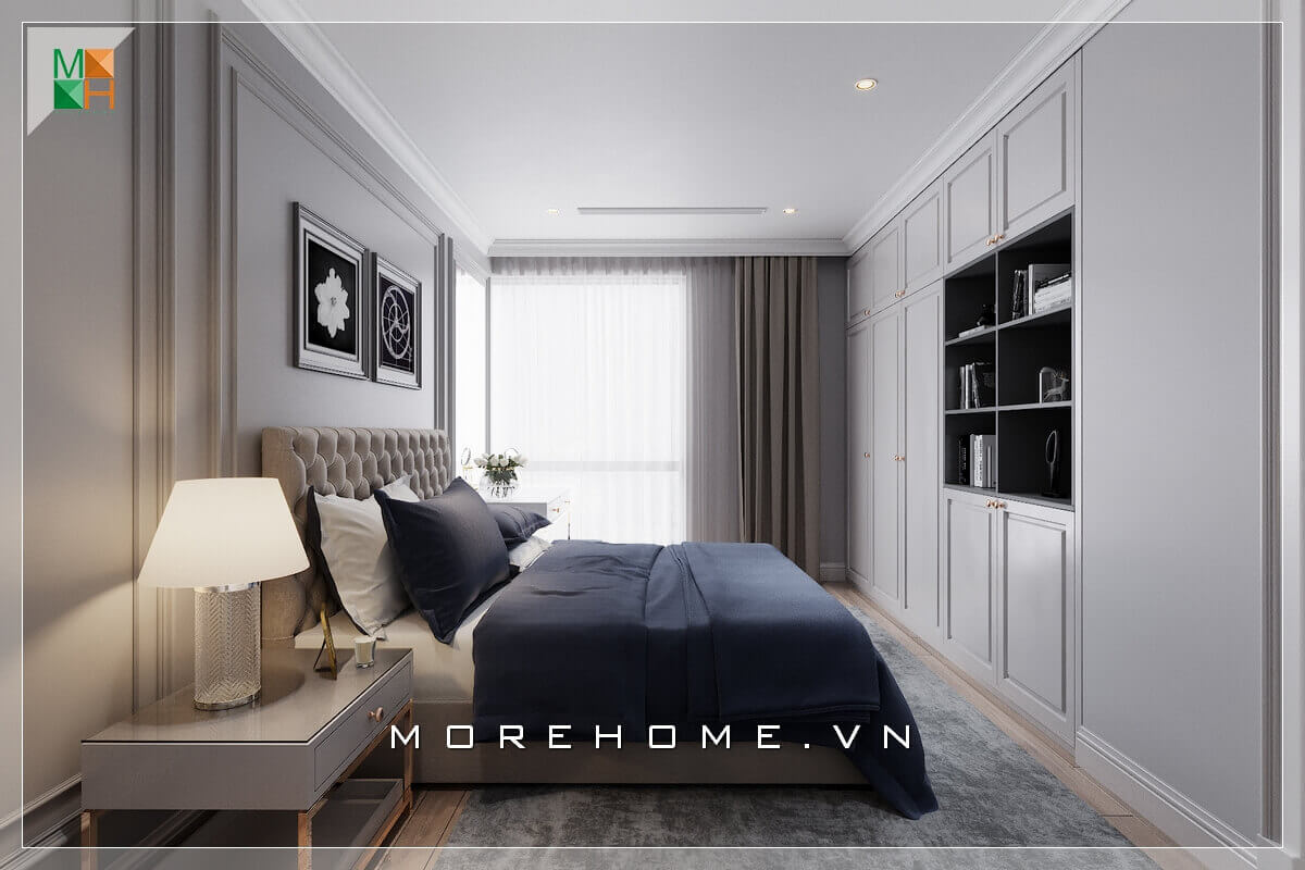 Thiết kế phòng ngủ có kệ trang trí bắt tường phù hợp với không gian căn phòng ngủ, biến căn phòng ngủ trở nên tiện ích và sang trọng hơn rất nhiều.