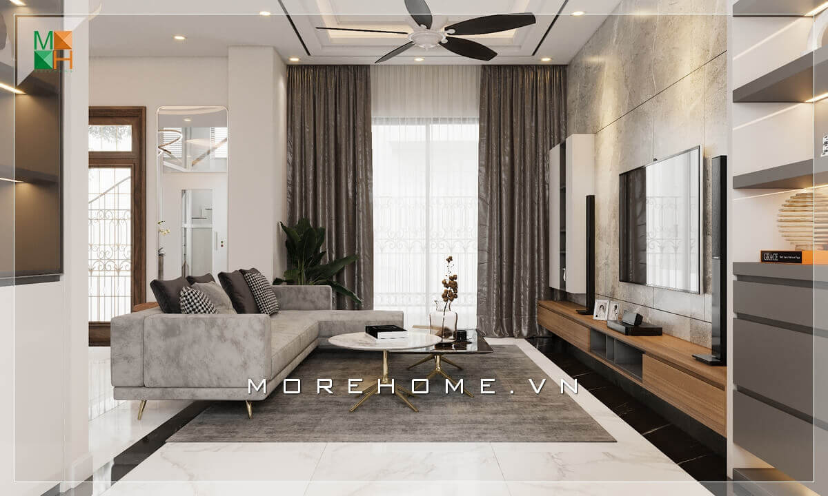 Morehome gợi ý cho bạn mẫu thiết kế nội thất phòng khách chung cư, nhà phố tiện nghi và sang trọng mang phong cách tân cổ điển.