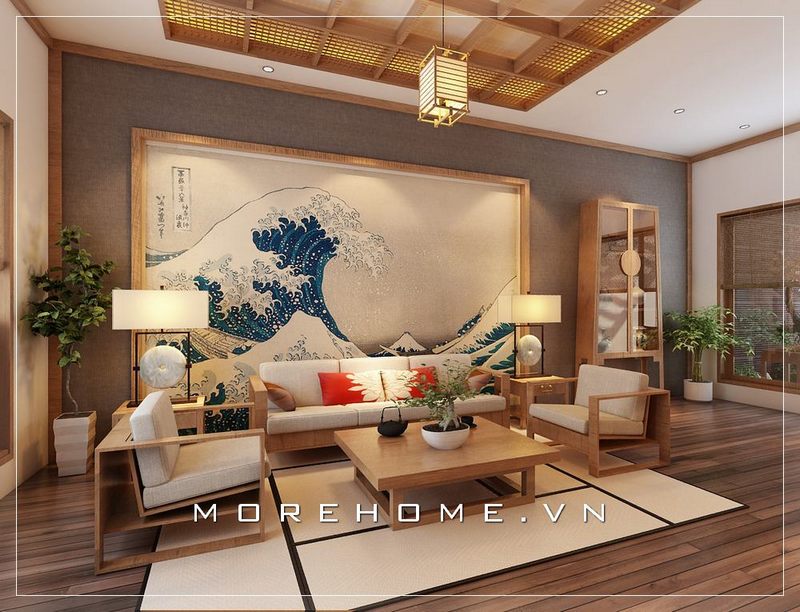 Thiết kế nội thất phong cách Nhật bản đẹp, sang trọng cho phòng khách căn hộ chung cư