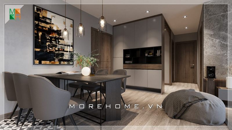 Thiết kế nội thất phòng ăn nhỏ phong cách hiện đại trẻ trung phù hợp cho không gian căn hộ