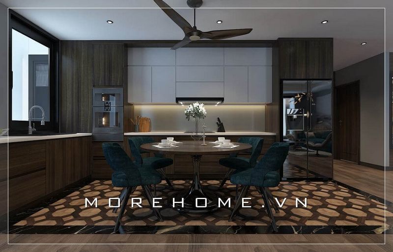 Cuối cùng, đừng quên áp dụng nguyên tắc hài hòa giữa ánh sáng và bố cục khi sắp xếp nội thất. Ánh sáng tự nhiên từ cửa sổ kết hợp với hệ thống đèn chiếu sáng hợp lý sẽ mang đến một phòng bếp ấm cúng và dễ chịu.