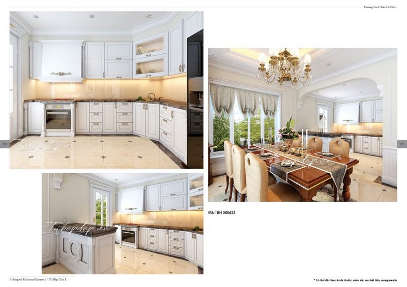 Các gia chủ được gợi ý sử dụng mẫu tủ bếp chữ L phong cách tân cổ điển màu trắng đẳng cấp để trang trí nội thất cho biệt thự, nhà phố của họ.
