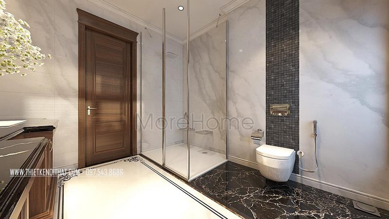 Mẫu của gỗ phòng tắm được thiết kế với phong cách hiện đại sang trọng, gam màu nâu tạo sự sang trọng và ấn tượng cho cả không gian